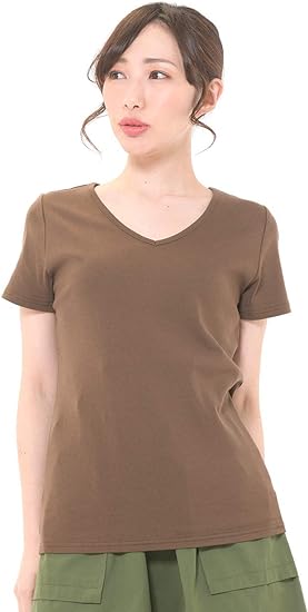 Amazon パークガール Park Girl 綿100 フライス 素材 無地 Vネック 半袖 Tシャツ レディース 大きいサイズ S M L Ll 3l Tシャツ カットソー 通販